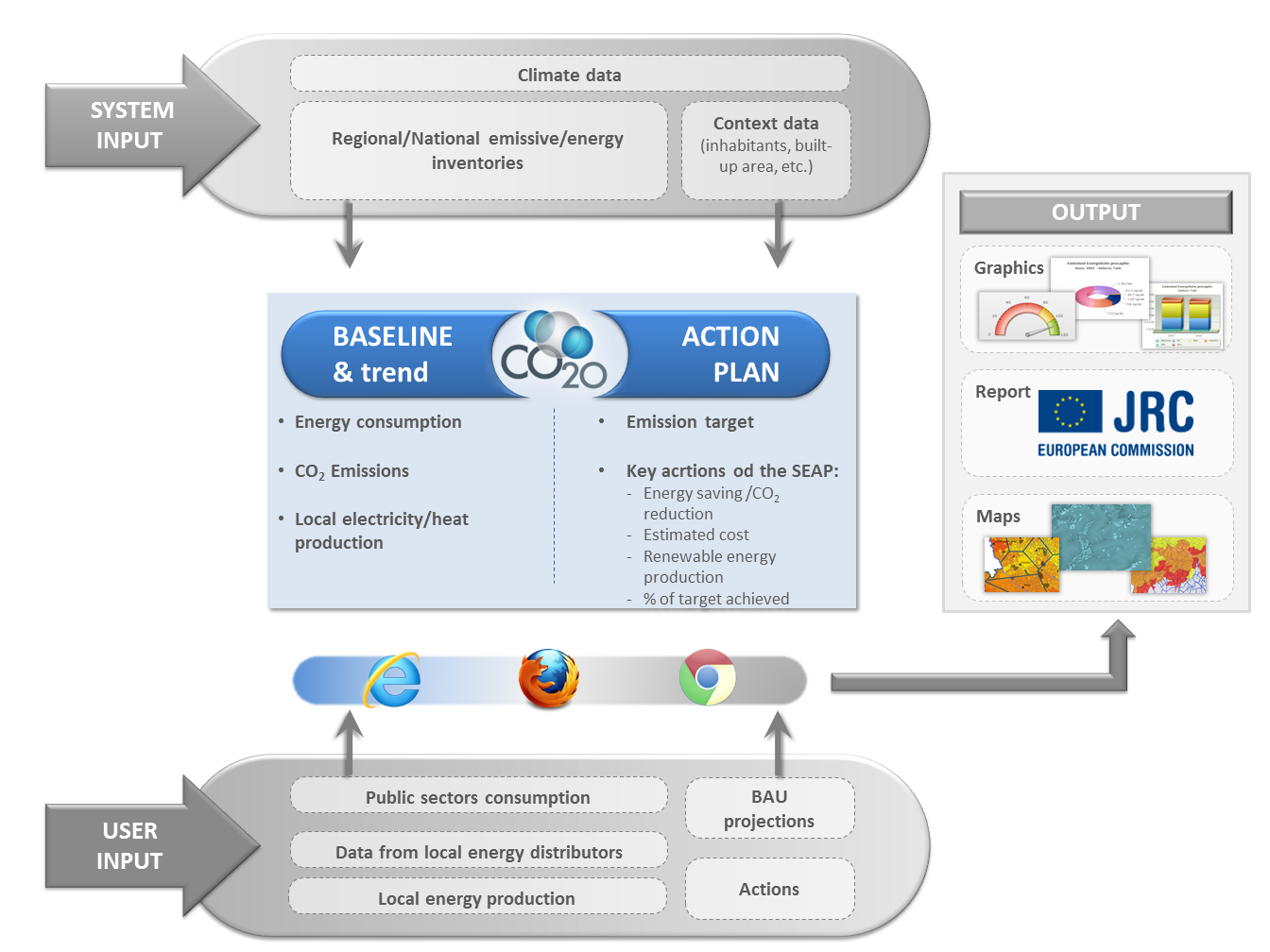 CO20 is provided as a software as a service with an access through a browser web; the cost of the service depends on the duration, the version and the number of inhabitants. Faced with the constant demands of the municipalities to be more aware of public building energy consumption, CO20 has been expanded including the monitoring of such consumptions, supporting all the analysis required to identify energy waste: this extended version is called CO20 Plus.